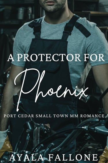 A Protector for Phoenix is a first-person, alternating perspectives romance with strict roles, a nurturing power exchange, plenty of heart, and a guaranteed happily ever after in this final book in the now-complete series. Each book in the Port Cedar Small Town MM Romance is a standalone gay romance.